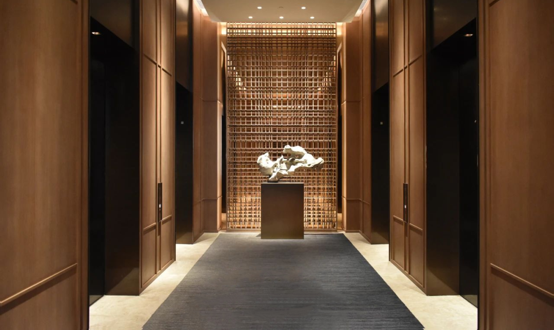 大堂背景雕塑“城韻”,取中國八大建筑派系精華集成,將傳統的古建筑元素以現代藝術手法進行重組,高高低低,錯落有致,講述著追夢人在此共同筑夢、追夢,搭建出城市的壯闊版圖。